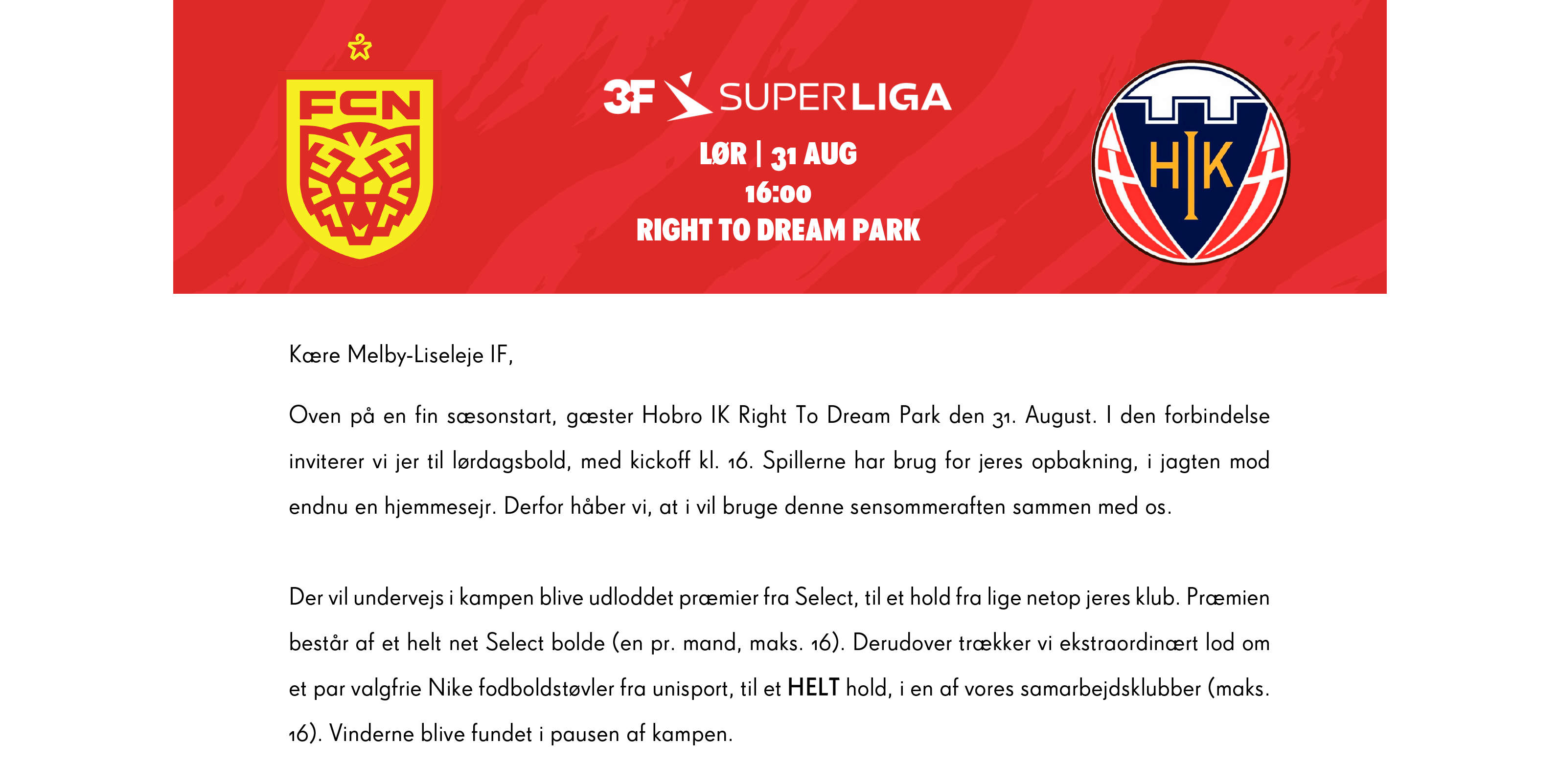 Invitation til FCN-Hobro