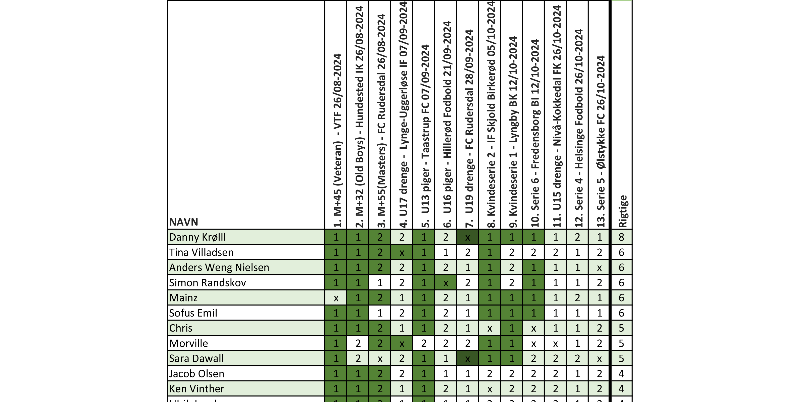TIPS Efterår 2024 stillingen efter 10 kampe.