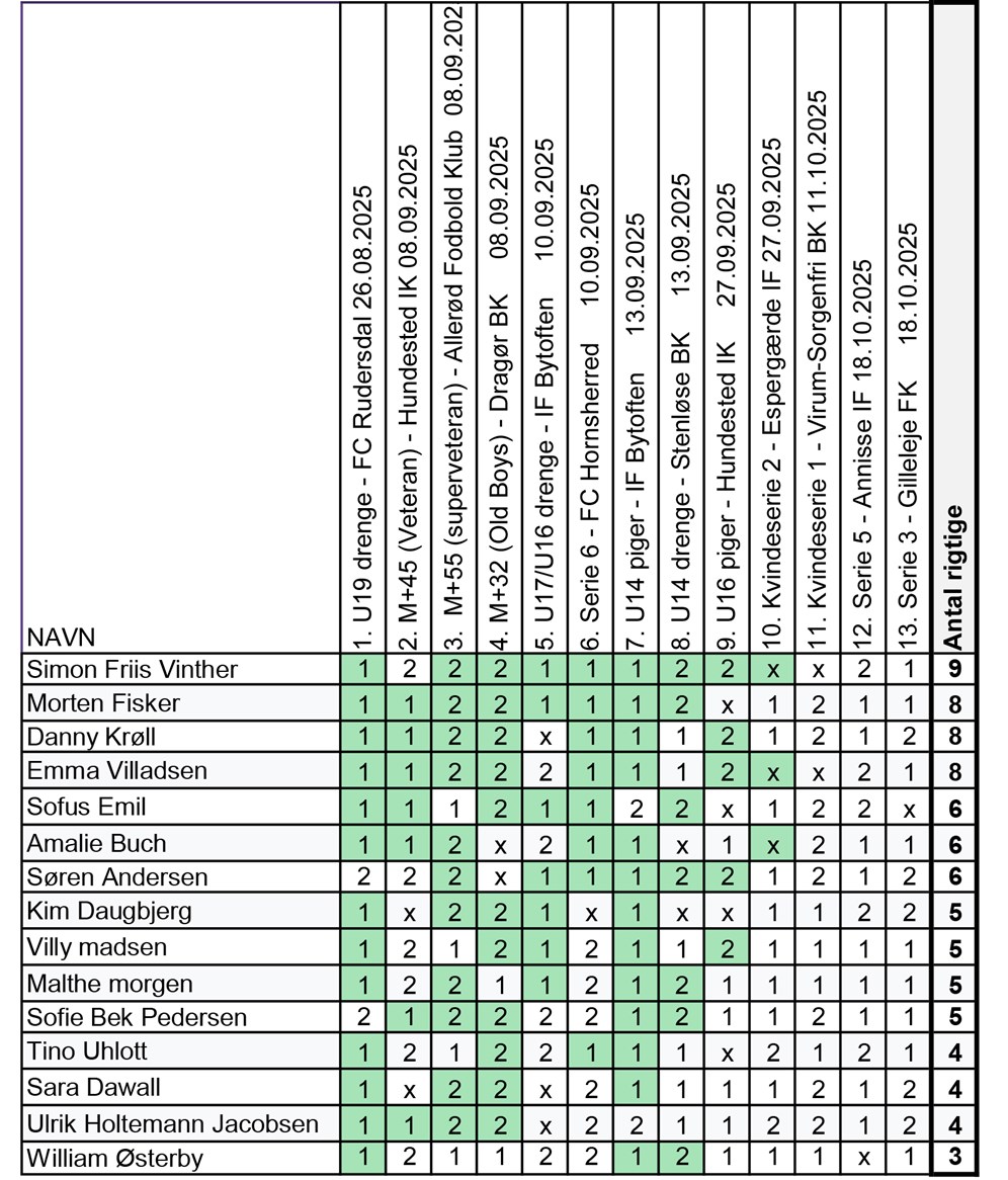 TIPS Efterår 2025 stillingen efter 10. kampe